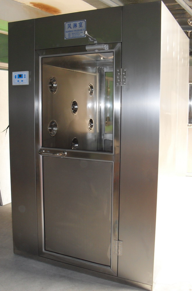不锈钢风淋室是水产品精加工、肉食蔬菜、速冻食品、糕点、饮料、罐头等食品生产厂家必备的除尘净化设备。当人员更衣净手浸脚消毒后,经过风淋室进入生产车间时,风淋室通过初效、高效过滤器,用强劲洁净的气流,除去附着于人员物料上的灰尘,毛屑等尘埃,保证工作场地达到严格的卫生要求,设备有全自动、手动多种类型。